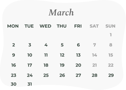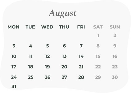 Check our calendar with all the dates we will be closed and ensure you receive your products on the desired times. Avoid delays by placing your orders earlier.