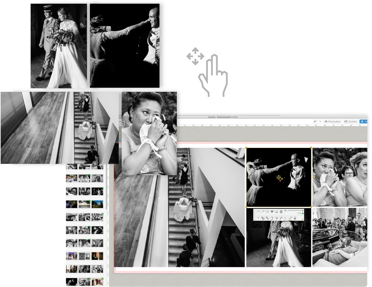 Upload the photos and the editor will arrange them according to the order you choose.