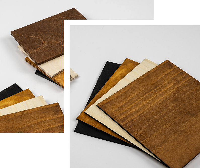 With a natural look, the wood that we use in our products can be coloured with a huge number of colours.